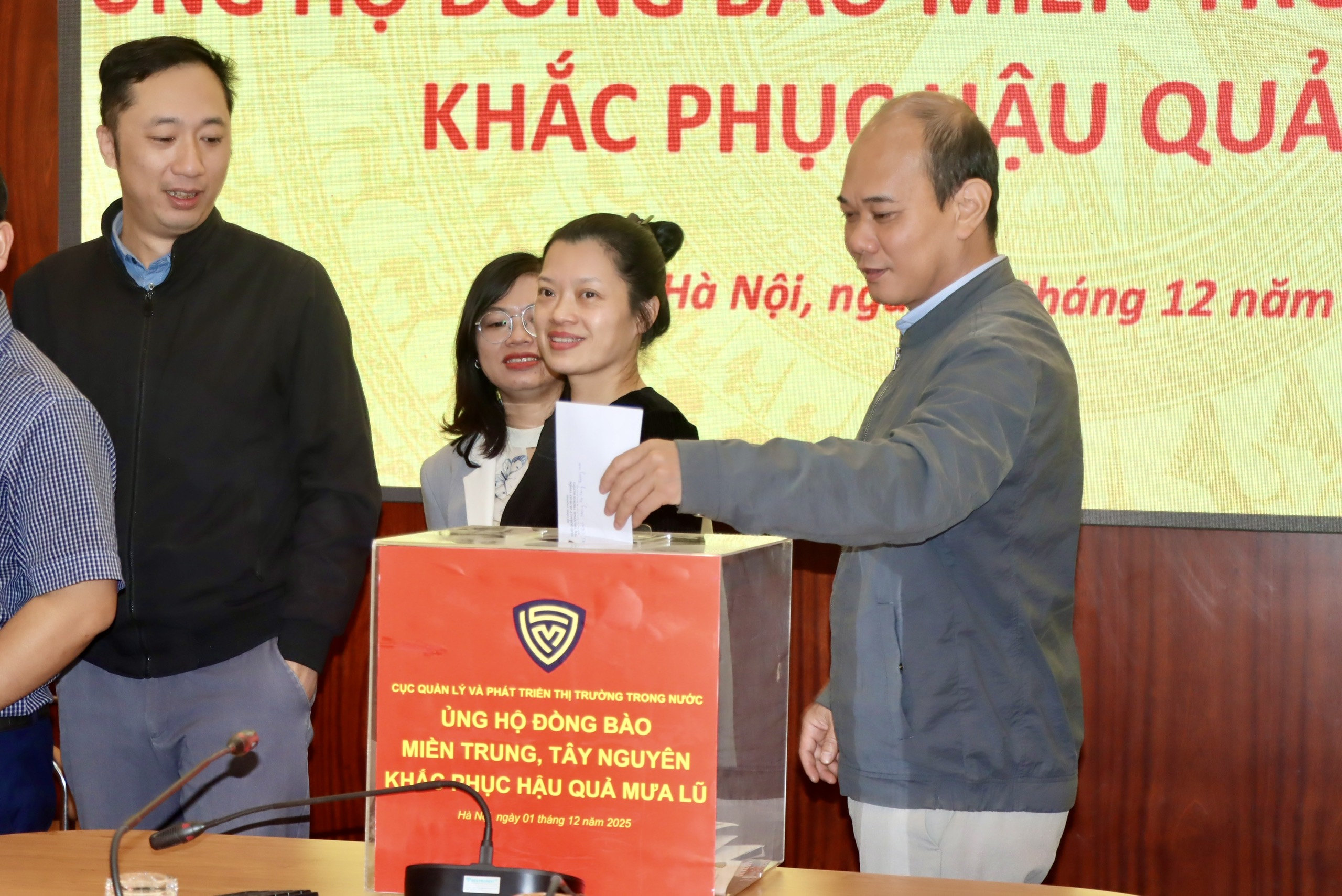 Trong những ngày qua, đồng bào các tỉnh khu vực miền Trung, Tây Nguyên đang phải oằn mình chống chọi với đợt mưa lũ đặc biệt lớn, gây thiệt hại nặng nề về người và tài sản, nhiều hộ gia đình, cá nhân cần được hỗ trợ, giúp đỡ. Với tinh thần “tương thân tương ái”, “lá lành đùm lá rách”, sáng 1/12/2025, Cục Quản lý và Phát triển thị trường trong nước đã phát động ủng hộ đồng bào miền trung, Tây Nguyên bị thiệt hại do mưa lũ gây ra. Cục trưởng Trần Hữu Linh chủ trì.