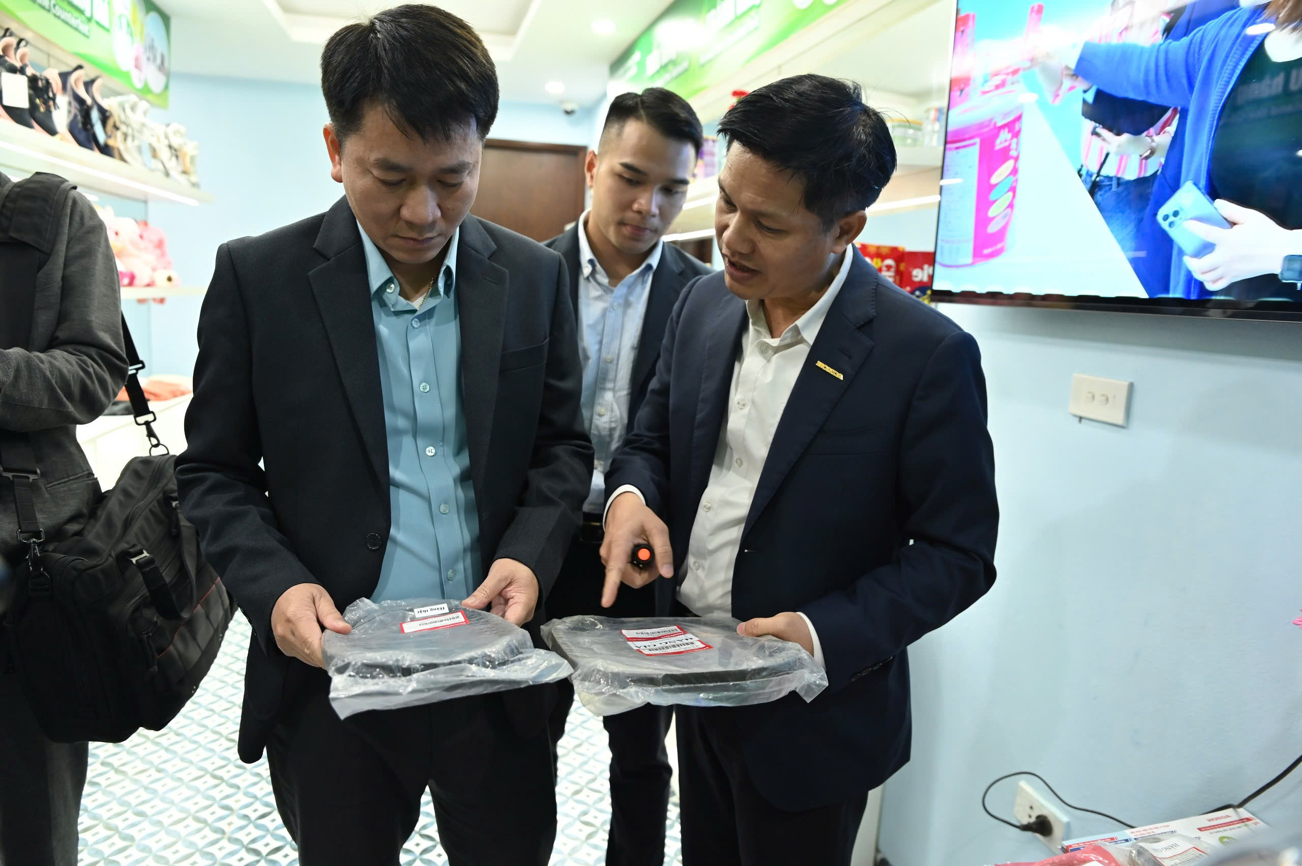 Điểm nhấn đáng chú ý là sự xuất hiện của nhiều sản phẩm do Hiệp hội Sở hữu trí tuệ Nhật Bản cung cấp phục vụ trưng bày, giới thiệu tới người tiêu dùng Việt Nam, gồm: giày thể thao Asics, vợt cầu lông Yonex, pin máy ảnh Canon, mỹ phẩm Transino, khóa kéo YKK, bugi NGK… Đây đều là những dòng sản phẩm có nhu cầu tiêu thụ lớn, dễ bị làm giả do giá trị cao. Tại phòng trưng bày, mỗi sản phẩm đều có đối chứng thật - giả rõ ràng, giúp khách tham quan trực tiếp so sánh, nhận diện từng chi tiết khác biệt, từ chất liệu, kiểu dáng đến tem nhãn một cách trực quan và sinh động.